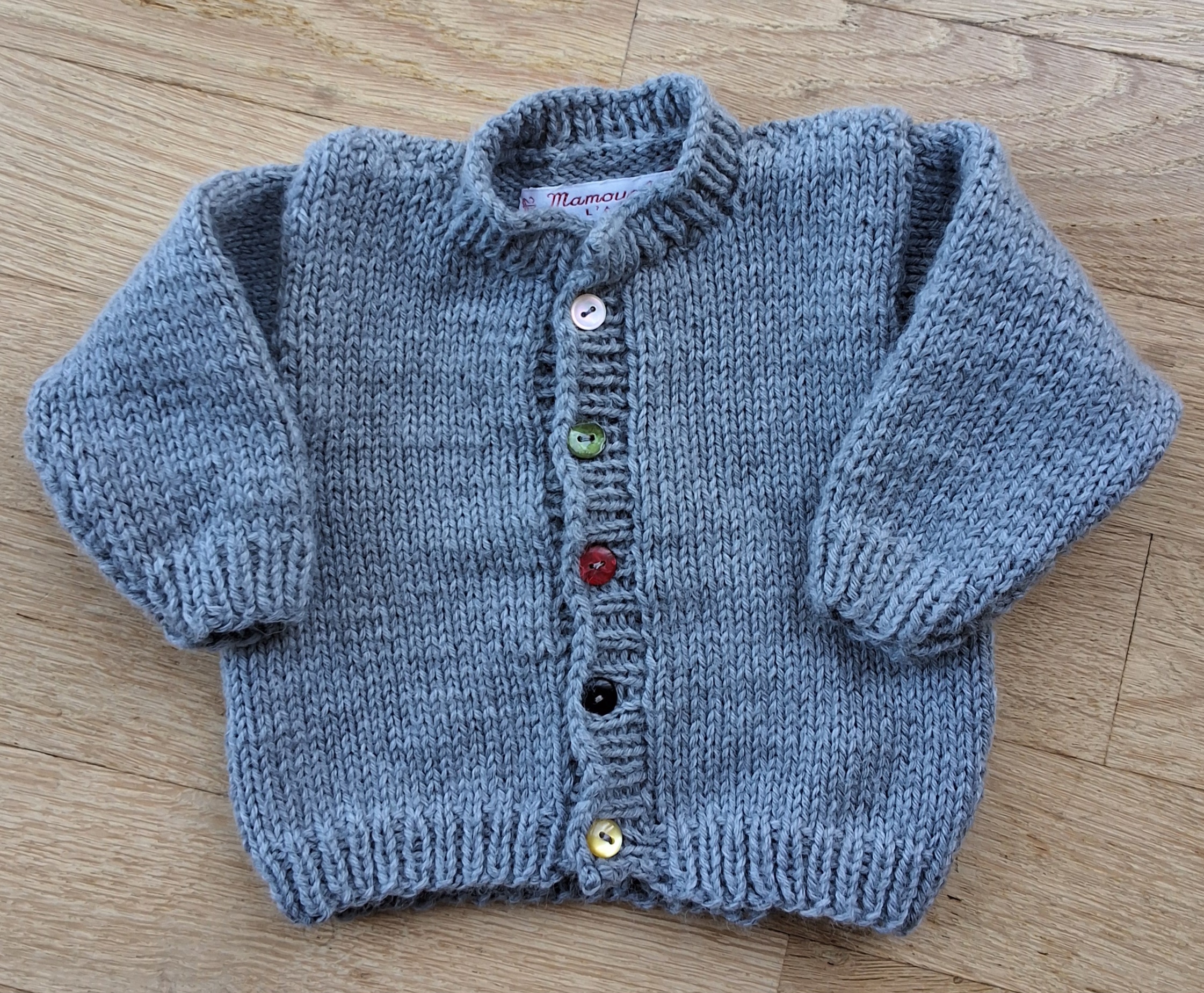 Gilet 3 mois gris à boutons multicolores (N°25-49) – Gilet 3 mois gris à boutons multicolores (N°25-49)