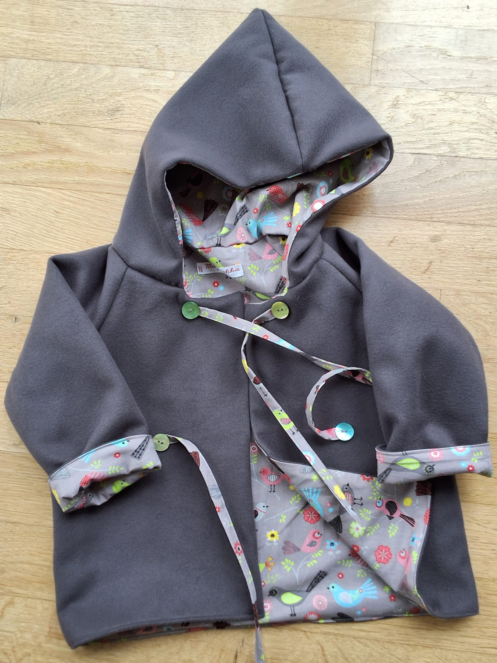 Manteau à capuche 18-24 mois tissus caban gris doublé coton gris à oiseaux (n°25-54) – Manteau à capuche 18-24 mois tissus caban gris doublé coton gris à oiseaux (n°25-54)